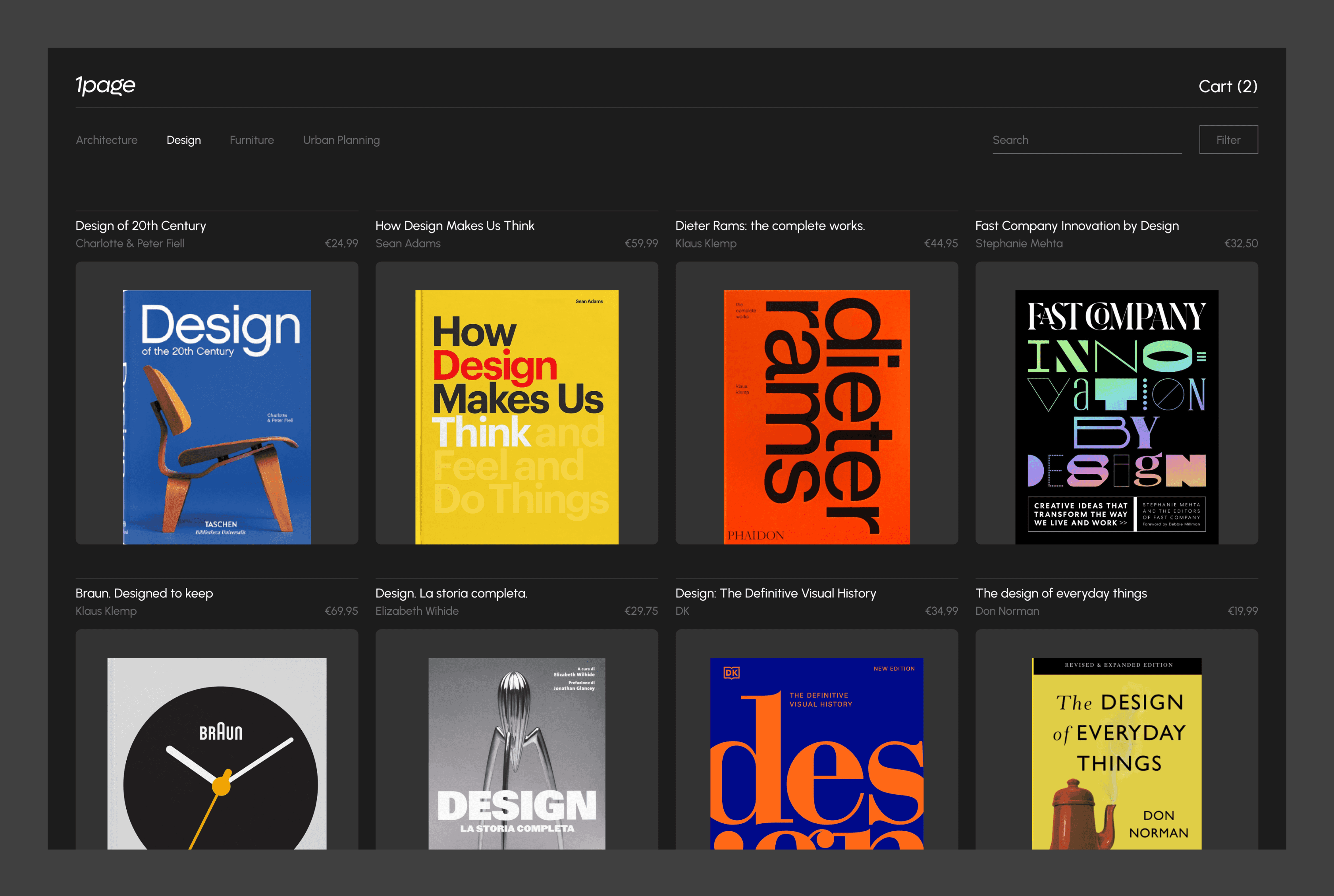 Questo progetto mira a creare un'esperienza d'acquisto fluida e coinvolgente, con un design minimalista focalizzato sulla bellezza delle copertine dei libri. L'interfaccia utente sarà pulita e intuitiva, mettendo in risalto visivamente le opere attraverso un layout spazioso e una palette di colori neutra.