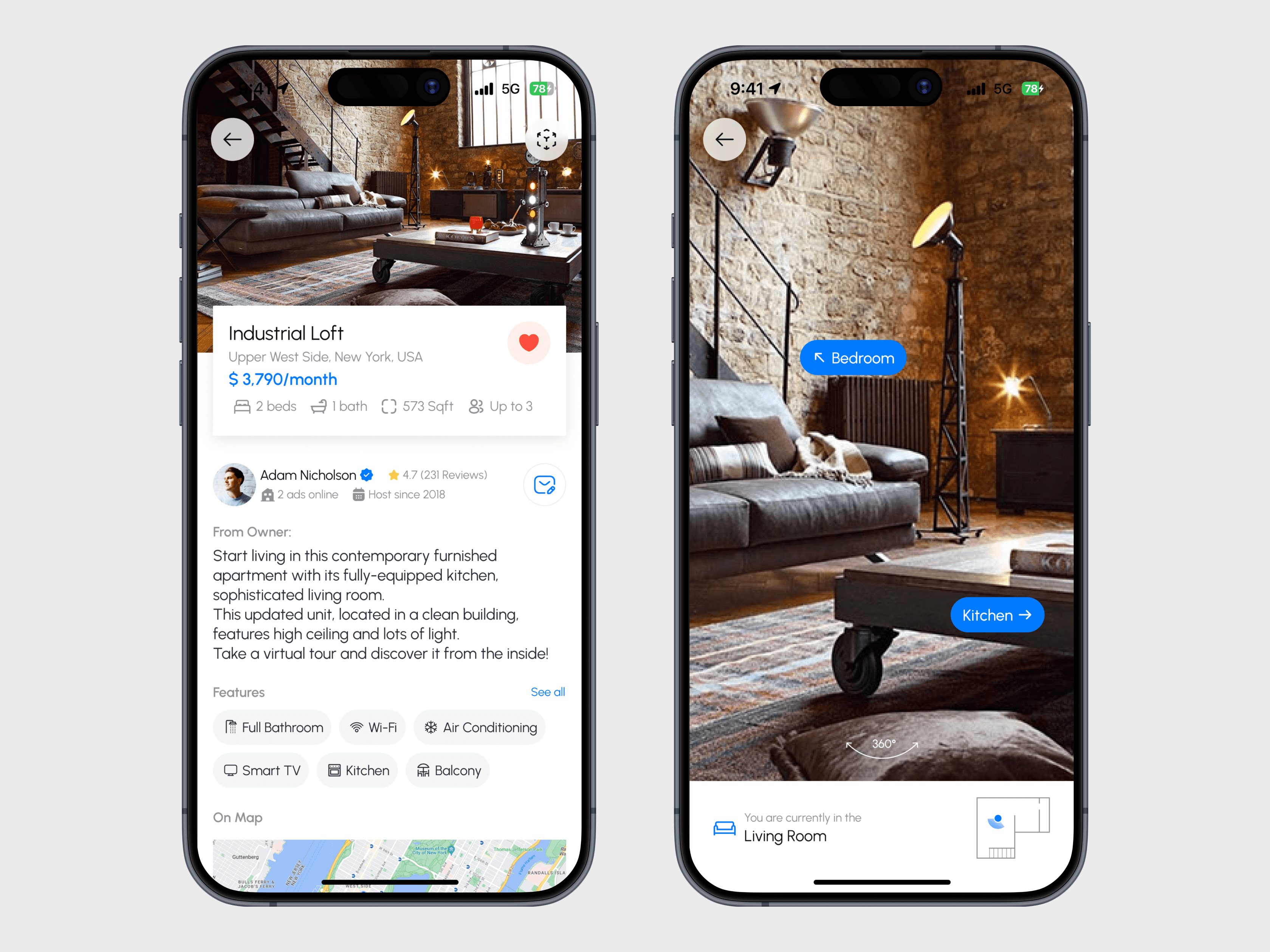 Cercare casa in affitto o in vendita può diventare davvero stressante, soprattutto quando le foto differiscono dalla realtà. Con le tecnologie a nostra disposizione, possiamo rendere piacevole questa ricerca dando la possibilità agli utenti di accedere a tour virtuali completi delle proprietà, offrendo una visione dettagliata e realistica dell'ambiente. L'integrazione di funzionalità VR consente agli utenti di "camminare" attraverso le stanze, ottenendo una sensazione autentica delle dimensioni e dell'atmosfera di ciascuna abitazione.